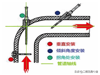 (1)温度取源部件与管道垂直安装时,取源部件的轴线应与管道的轴线垂直。