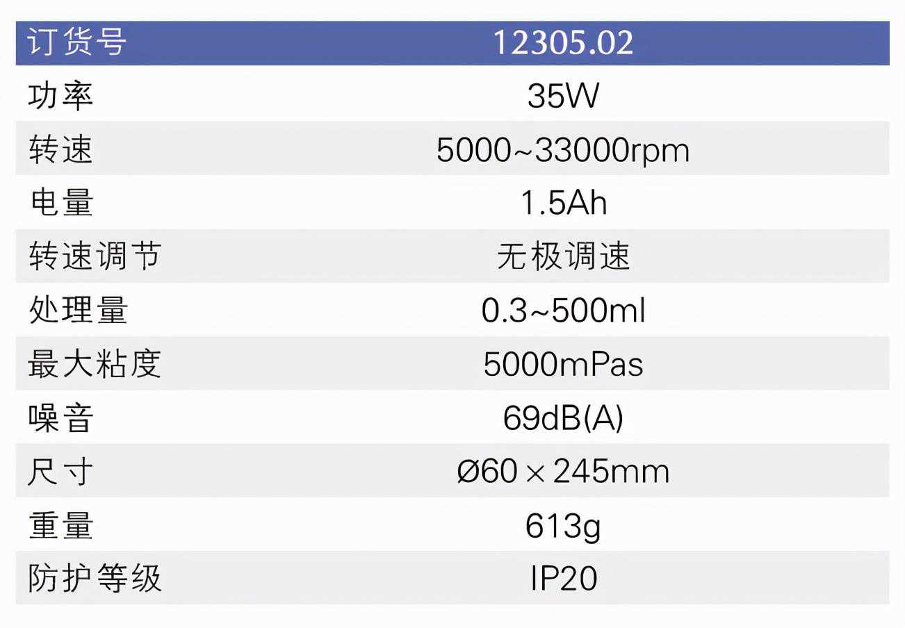 手持式分散机系列(插电与充电型),机体小巧灵活、操作舒适省力,特别适合实验室少量样品的处理,搭载高品质马达,带动转子高速转动,使样品在定转子之间的缝隙中均质与分散,从而达到精细化处理。刀头直径4种可选(5、7、10、14mm),可在极短的时间内处理0.3~500ml的样液,适配多种类型的分散刀头,可满足不同形态样品的破碎、剪切、乳化和极度混合等实验要求,是实验室手持操作的理想选择。另有充电型可选,可现场移动操作。