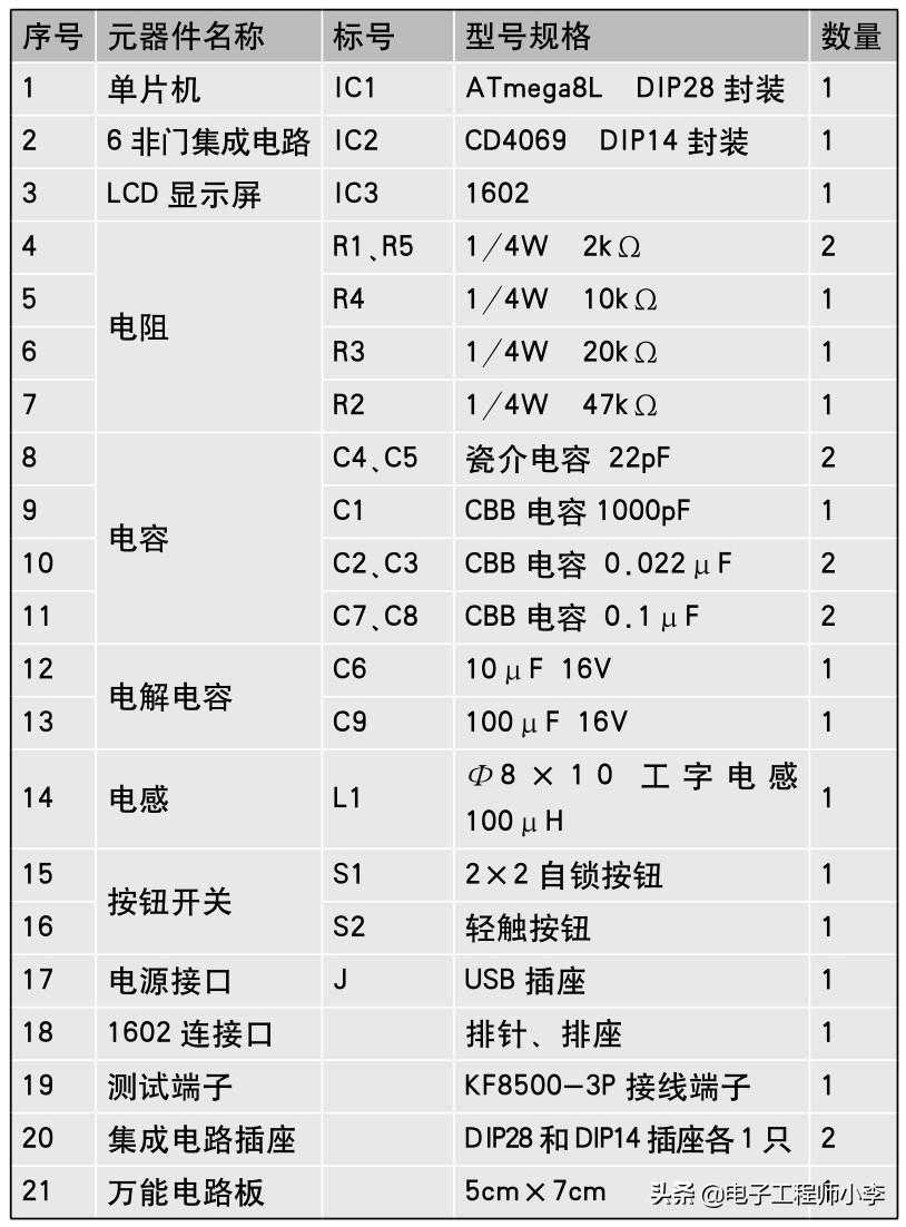 安装调试制作所需元器件的清单见表23.1。