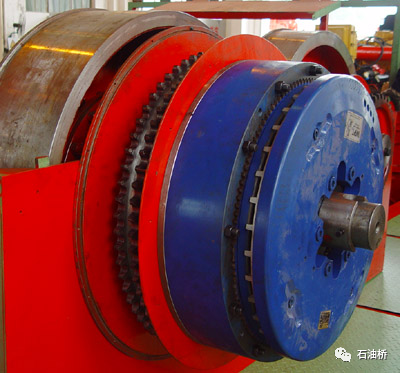 主滚筒组成:离合器、滚筒体、刹车毂、轴等。作用:缠绕卷扬游动系统的钢丝绳,驱动游车大钩运动。