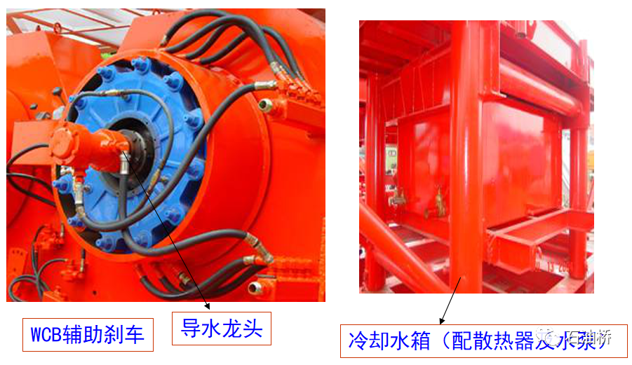 辅刹车:水刹车、水箱、开关、管线及气控阀组成。作用:减缓滚筒下放时的转速。