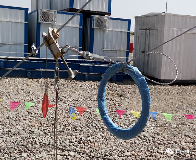 04提升系统悬吊和起下井内管柱。包括:绞车、井架、钢丝绳、天车、游车、大钩、吊环。