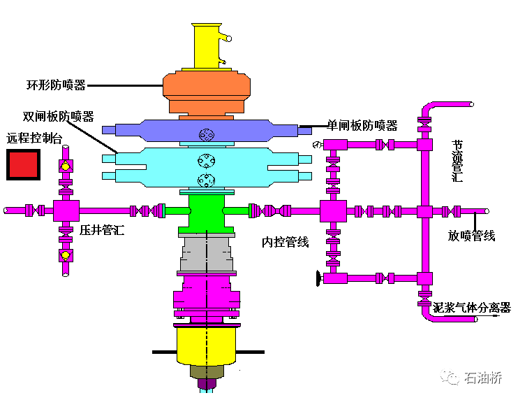 包括防喷器组、内控管线、采油(气)井口、套管头、内防喷工具、防喷器控制系统、压井管汇、节流管汇、反循环管线、放喷管线、液气分离器、监测设备等。