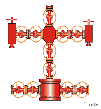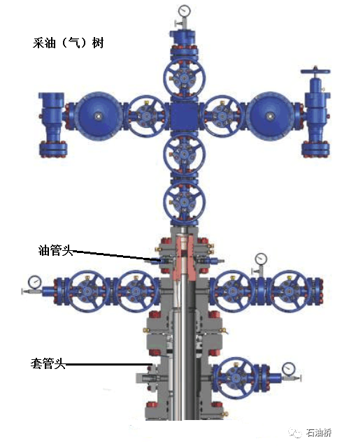 采油(气)树:装于油管头最上部的阀门和附件的组合装置,用于控制油气井的生产。