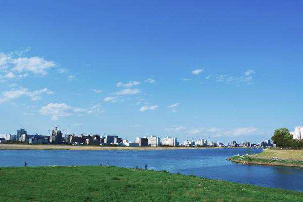 午后的阳光正好,光线从我在的岸头洒向对面。青空下的浮云,近处的散成一朵,远处的聚成一团,因是日无风,所以这些白云就挂在空中,一动不动,虽说少了几分幻化,但又多了些许永恒。更可观的是,那条舒缓深邃的多摩川在阳光的照射下呈现出海一般的瑰丽与从容,宛如一条靛蓝色的舞裙在茵茵绿草中徐徐摆动。特别是那夺目的靛色,真可谓是出于蓝而胜于蓝,让人印象深刻。