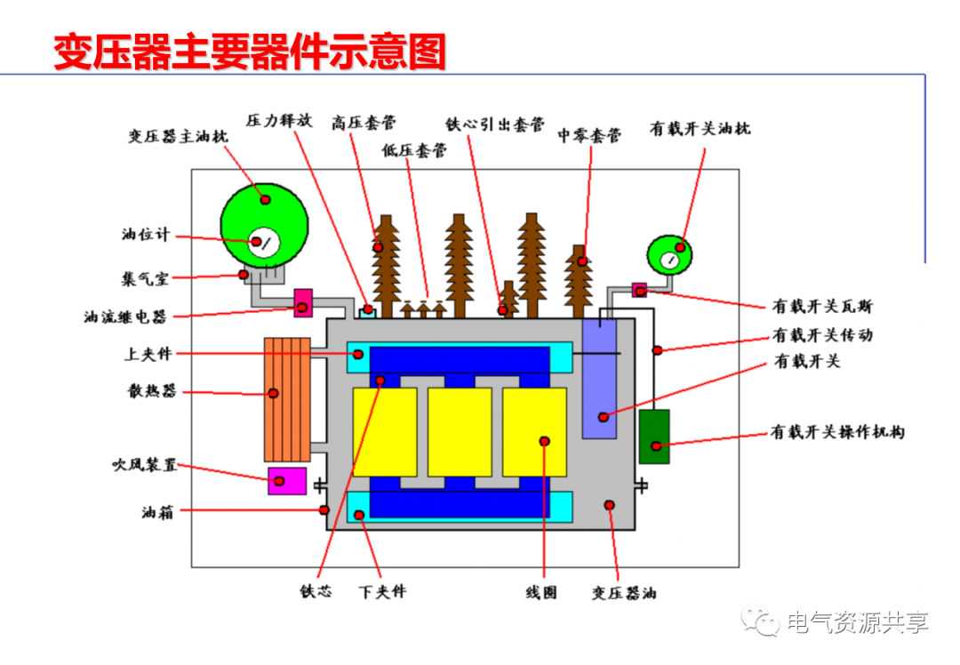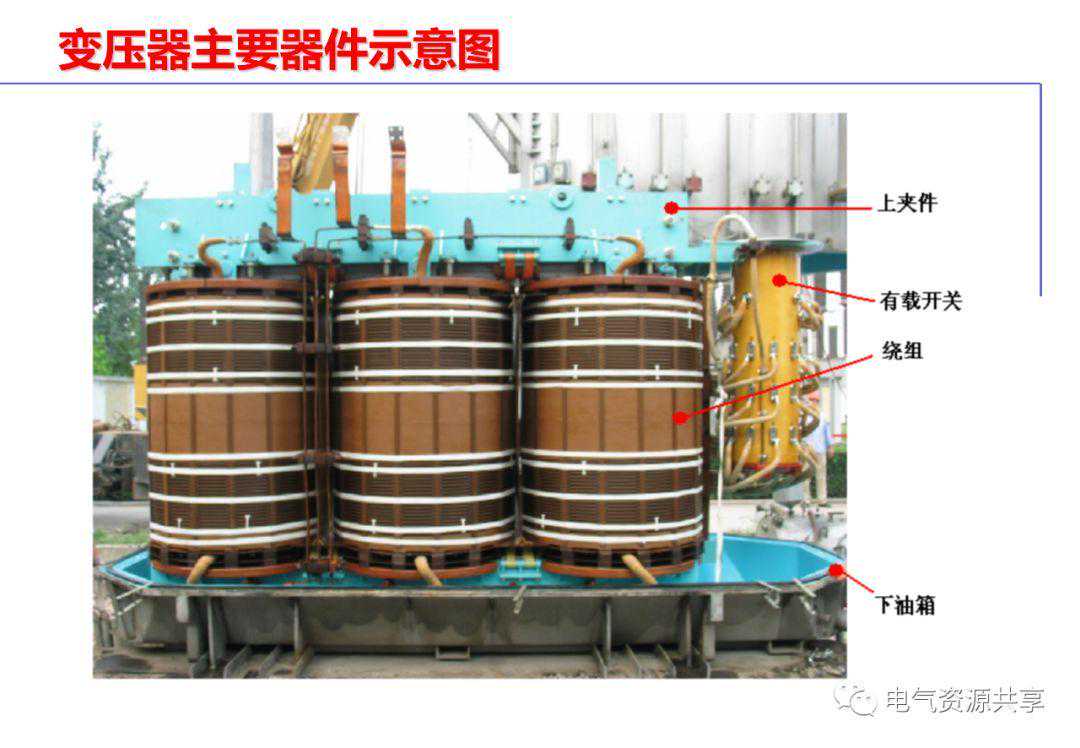 变压器部件主要是由铁芯、线圈组成,此外还有油箱、油枕、绝缘套管及分接开头等。