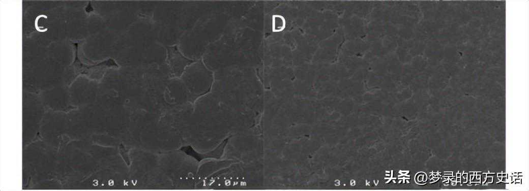 1:10的nc-PET在10mLTFA中陈化72h,对照PET在10mLTFA中陈化72h,涂上金并成像。