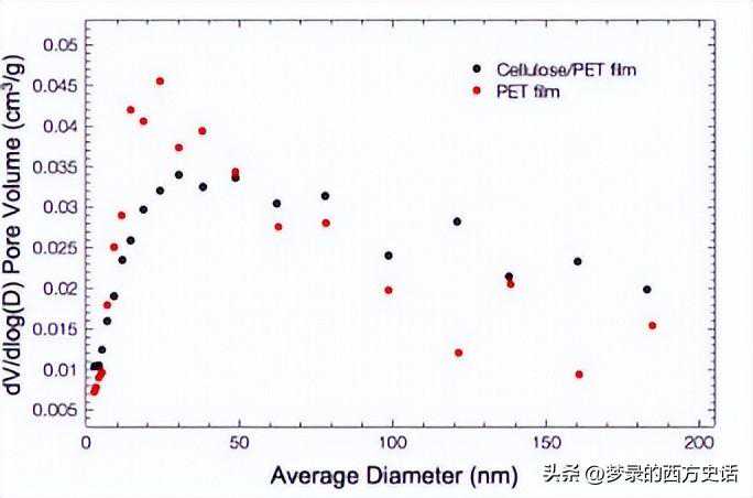 孔隙率分析表明,上述纤维素PET膜与对照PET膜的表面积在实验误差范围内相同,分别为11.9和12.5m2/g。