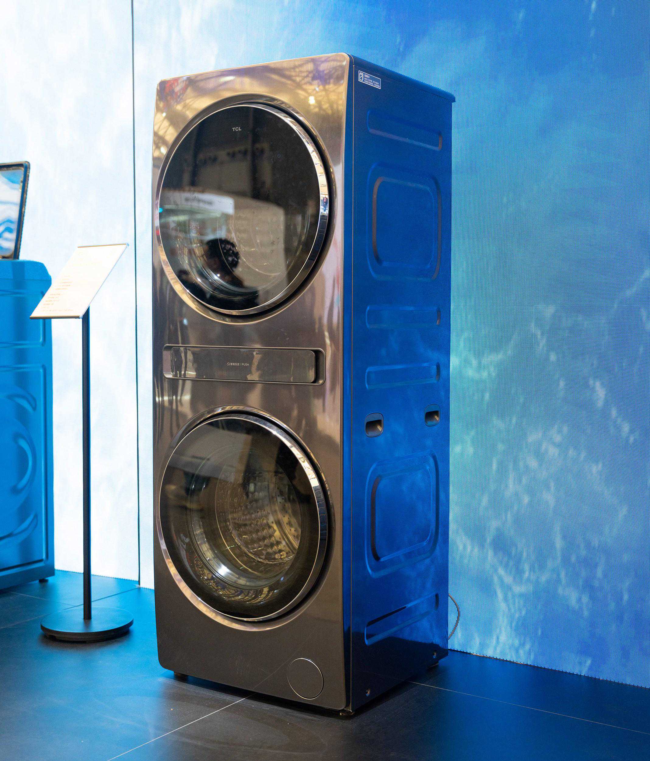 洗衣机目前国产品牌中,能实现这些功能并经过实测做得很好的,也就是去年TCL发布的双子舱Q10,上下双舱连体洗衣机最大的难题其实是上部容量很难做大,TCL是解决了这个难点,把上筒做到了42L,上下同时一起满载洗衣也非常稳定。