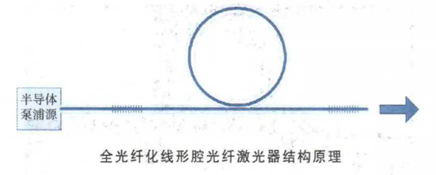 以光纤作为激光增益介质的激光器被称为光纤激光器。与其他类型的激光器一样,由增益介质、泵浦源和谐振腔三个部分组成。光纤激光器使用纤芯中掺杂有稀土元素的有源光纤作为增益介质。一般采用半导体激光器作为泵浦源。而谐振腔则一般利用反射镜、光纤端面、光纤环形镜或光纤光栅等器件构成。