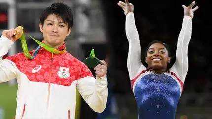 △内村航平(图左)与西蒙·拜尔斯(图右)