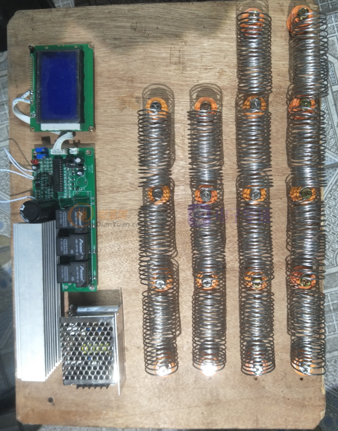 所有配件已经安装到木板上,供电找了一只220V/12V/35W铝壳开关电源,给板子供电