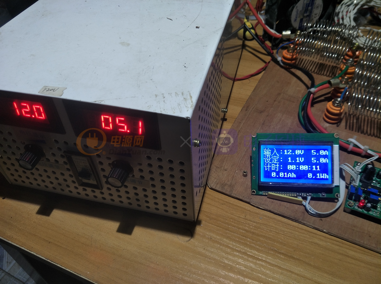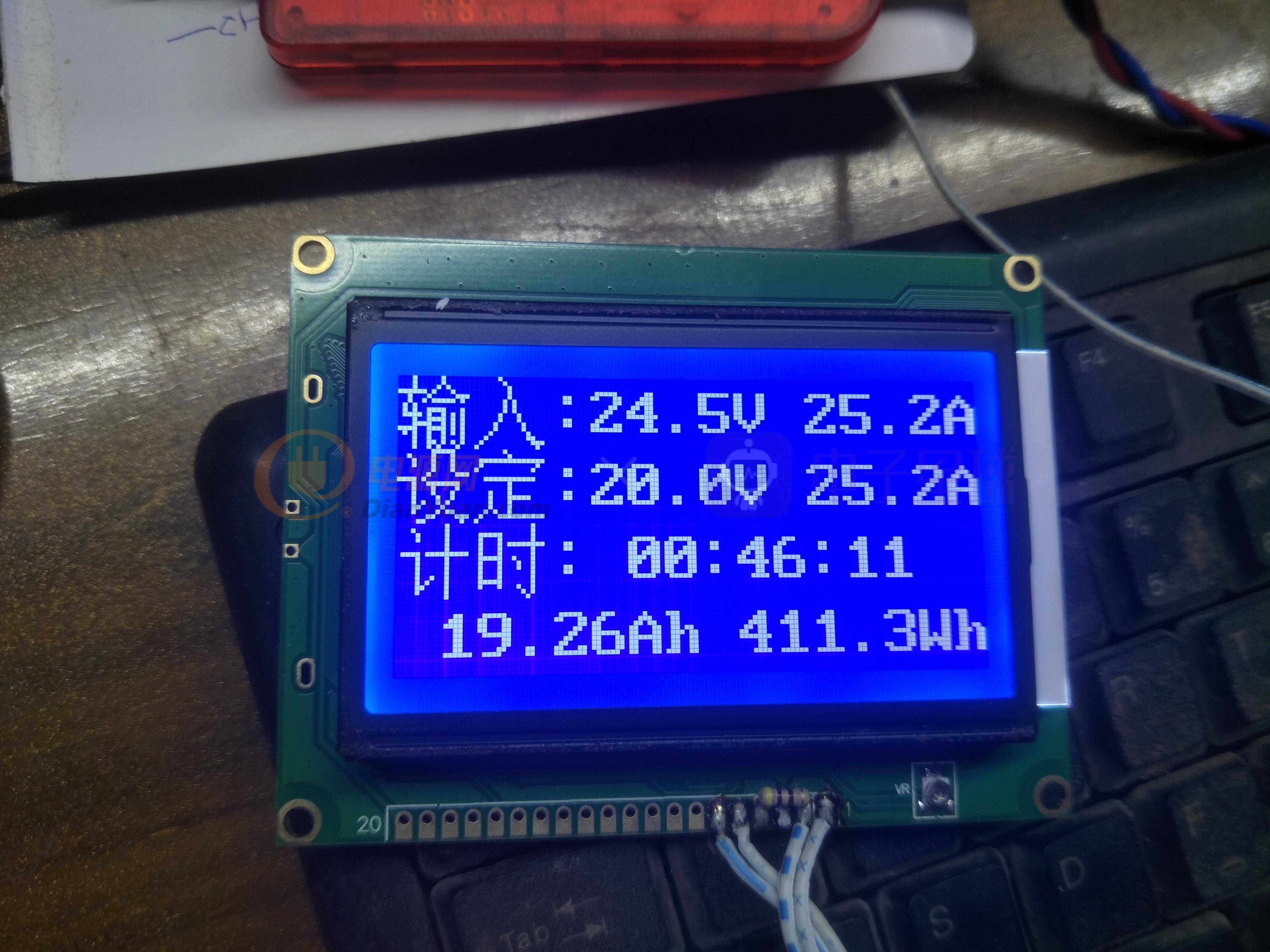 电压电流表头调校完毕,开始测试程序运行,CC,CV自动识别,前面讲的很清楚,这里不重复了,如果在测试蓄电池容量时,可以先设定截止电压和想要的放电电流,再按开机键,可以计算电池Ah,同时计算蓄电池的Wh,三元锂电,磷酸铁锂,铅酸蓄电池都可以测试。