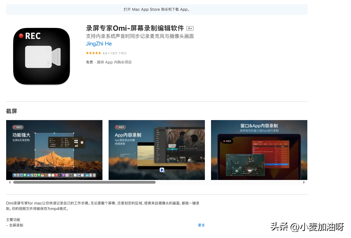 该软件的安装与使用也是非常的简单,直接通过Mac软件商店安装即可,重点是该软件还是免费试用。在市面上很多的录屏软件,都是付费使用,这款软件提供给大家免费试用,真的是强烈推荐的一款录屏软件。
