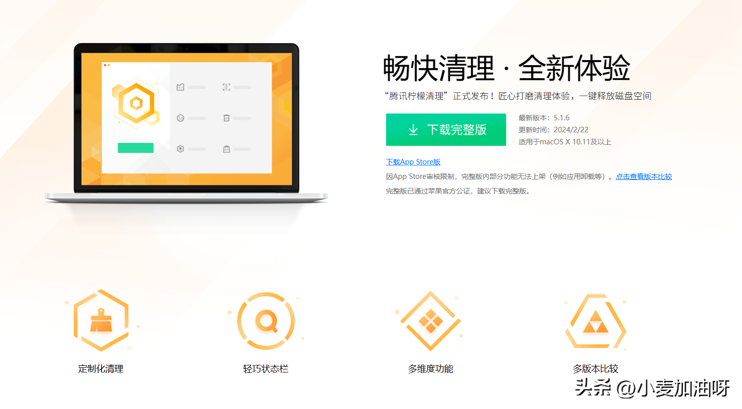 使用该软件也是非常的简单,你可以通过Mac软件商店下载使用,也可以通过腾讯柠檬官网下载使用。不过比较推荐从官网下载安装,因AppStore审核限制,完整版内部分功能无法上架,需要体验完整版就只能通过官网渠道下载。