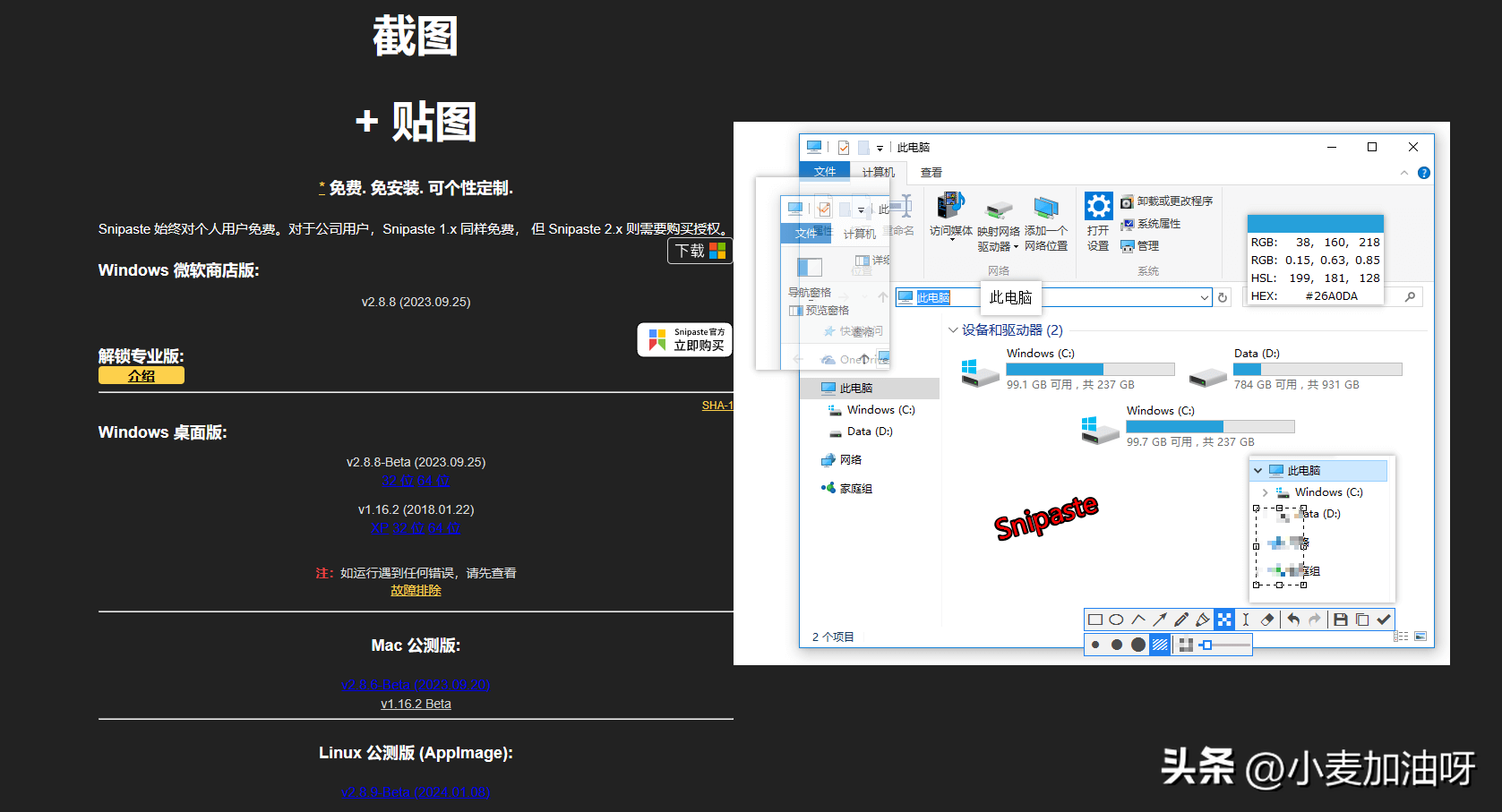 Snipaste截取工具对于截图的需求,但凡使用电脑的用户,都会使用这个功能。例如聊天截图、办公截图等。虽然我们常用的办公、通讯软件,例如企业微信、微信、飞书和钉钉这些软件都提供了截图的功能。但严重依赖软件的运行才可以使用,并且只有单纯的截图功能。