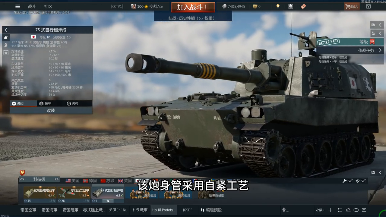 该炮身管采用自紧工艺,炮塔为全封闭式,装备液压装置、自动装弹机、火控系统、三防装置、通信设备等。由于该车大量采用铝合金材料,因此重量较轻,使用和74式主战坦克相同的发动机,机动性强。