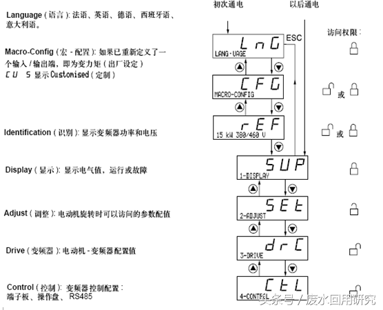 菜单中可以观察到变频器的状态、频率给定、施加给电动机的输出功率、电动机的速度、电动机的电流、电源电压、上次出现的故障、能量消耗、连续运行时间等只读参数。从而很好的了解到的变频器或相关电机的状态;、
