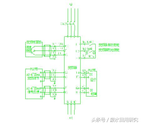在水处理系统中我们常采用以下的电气原理图来实现变频功能: