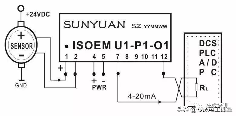 因此,当PLC等数据采集系统的模板输入通道设定为连接四线制传感器时,PLC只从模板通道的端子上采集模拟信号,而当PLC等数据采集系统的模板输入通道设定为连接二线制传感器时,PLC的模拟输入模板的通道上还要向外输出一个直流24V的电源,以驱动两线制传感器工作。