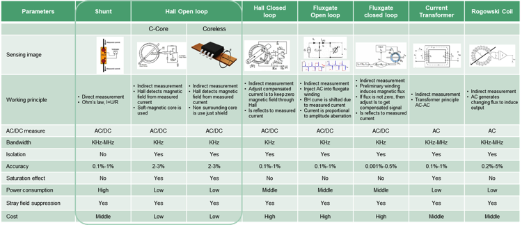 电流传感器的小电流精度才是真正考验传感器的地方,因此为了满足不同电流的精度需求,目前市面上有双量程输出的电流传感器,以及霍尔电流传感器与分流器组合方式,其中霍尔负责大电流,分流器负责小电流。磁阻技术的引入也增加了高精度需求的可选项。