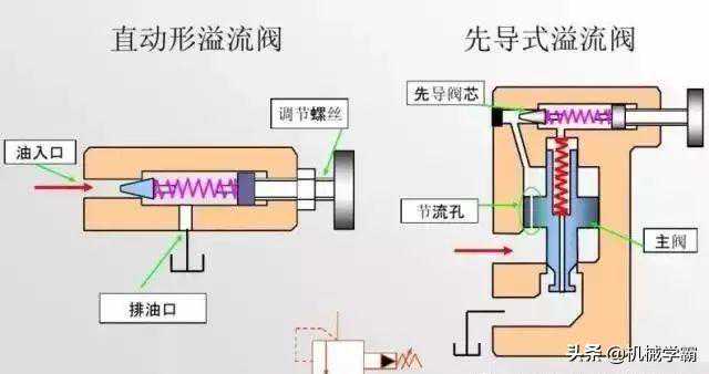 溢流阀就是通过阀口的溢流,调定系统工作压力或者限定其最大工作压力,防止系统过载。