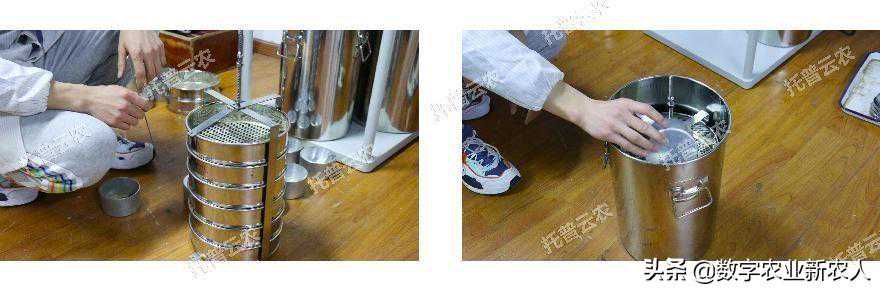 1.先将筛子从小到大,从下往上以此放入挂架,并在顶层放入样本,然后置于装好水的不锈钢桶中;