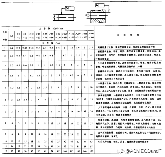 表1.圆柱度公差值及应用举例