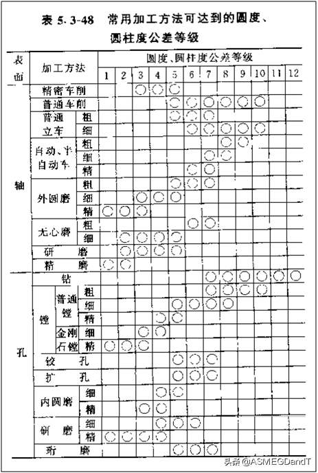 常用加工方法能达到的圆柱度公差等级如表2.