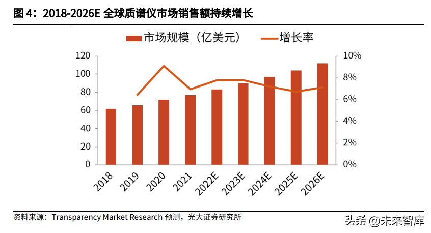 随着新药开发、药物再利用以及药物制剂的生产规模不断扩大,制药行业对安全性和质量措施的需求不断增长。碳中和政策将继续推动环境监测设备市场需求的大幅增长,严格的政府法规、以及市场不断增长的需求,将继续推动质谱仪的应用。在下游应用领域需求不断拓展的拉动下,全球质谱仪市场将保持稳健增长的态势。