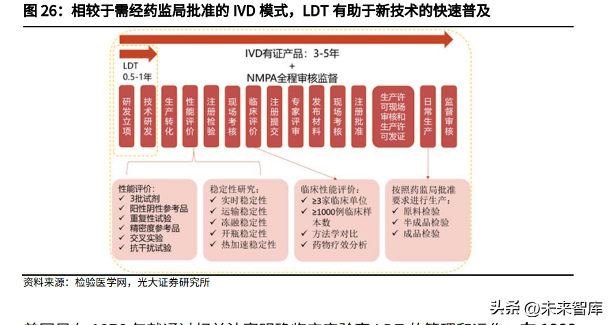 美国早在1976年就通过相关法案明确临床实验室LDT的管理和运作。在1988年,美国国会通过了临床实验室改进修正法案(ClinicalLaboratoryImprovementAmments,CLIA),该法案规定了美国医疗保险和医疗补助服务中心(CentersforMedicareandMedicaidServices,CMS)对LDT的监管权力,同时也授予了美国病理学家学会(CollegeofAmericanPathologist,CAP)对临床实验室进行认证的资格。政府机构和专业学会协同管理的模式推动了美国LDT的快速发展。而在我国,2021年6月1日起实施的《医疗器械监督管理条例》(739号令)第五十三条规定,对国内尚无同品种产品上市的体外诊断试剂,符合条件的医疗机构根据本单位的临床需要,可以自行研制,在执业医师指导下在本单位内使用。具体管理办法由国务院药品监督管理部门会同国务院卫生主管部门制定。2021年7月15日,国务院发布《关于支持浦东新区高水平改革开放打造社会主义现代化建设引领区的意见》,第四条明确提出:在浦东新区范围内允许有条件的医疗机构按照相关要求开展自行研制体外诊断试剂试点。该政策进一步明确了浦东新区的医院及第三方医学检验中心可以先行开展LDT业务,未来我国LDT及ICL有望快速发展,促进质谱的迅速普及。