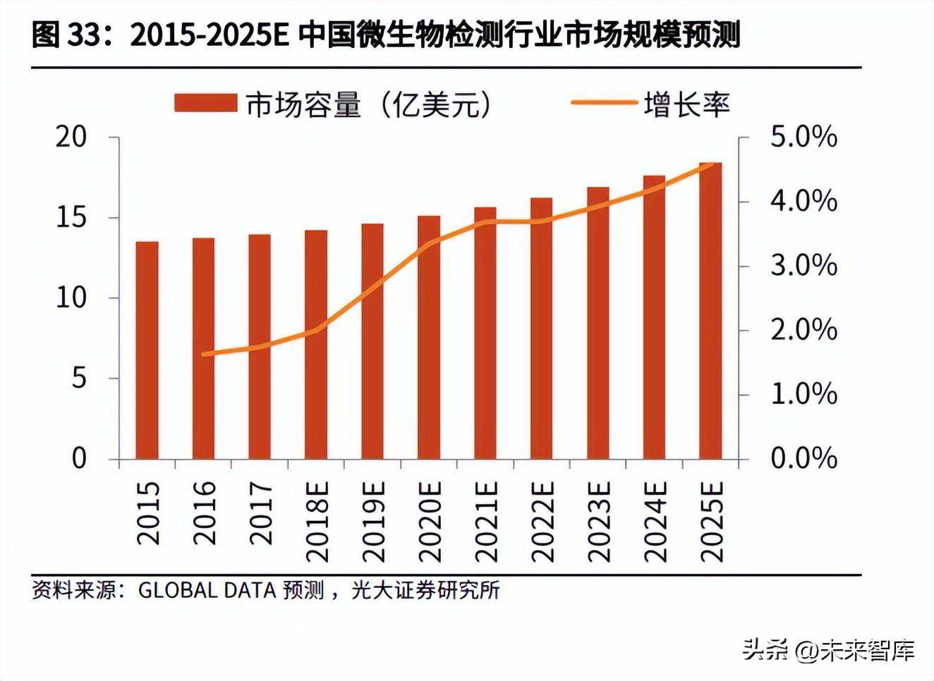 由于临床科室的不足以及抗生素用药的泛滥,我国微生物检测行业前期发展较慢。2017年全球微生物检测行业市场规模为161.6亿美元,而中国仅为14亿美元左右。据疾控局数据,2018年全国三级医院设置感染性疾病科病房的比例不足八成。2020年,卫健委在《关于印发公共卫生防控救治能力建设方案的通知》提出,要提高县级医院传染病检测和诊治能力,重点加强感染性疾病科和相对独立的传染病病区建设,完善检验检测仪器设备配置,提高快速检测和诊治水平。随着国家的重视,预计微生物检测市场规模将会有较快的增长。据GlobalData预测,中国微生物检测行业市场规模将于2025年达到120亿元人民币。