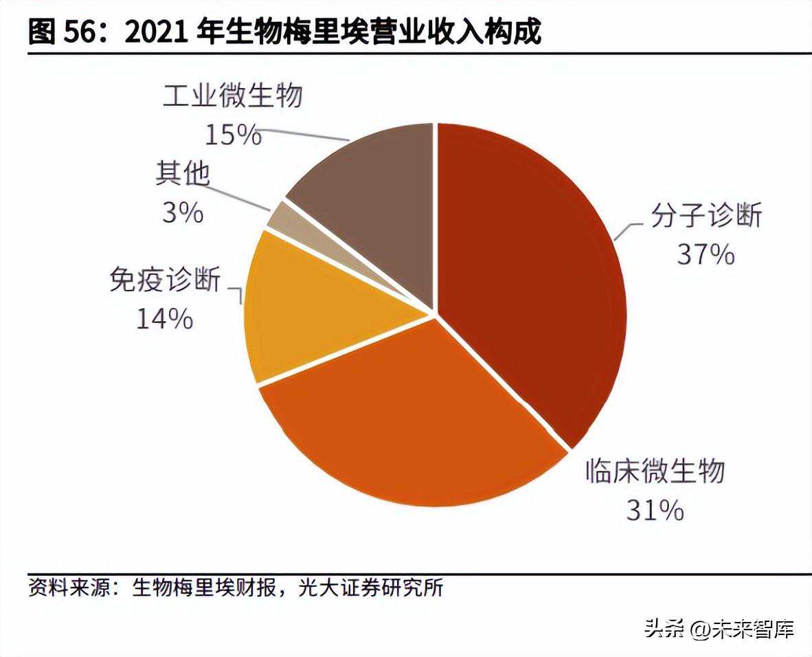 生物梅里埃公司是体外诊断的全球领先者。公司于1963年成立于法国,专注于开发医疗和工业用途的IVD产品,是全球最大的微生物体外诊断公司。其业务主要分为临床微生物诊断、免疫诊断、分子诊断以及工业微生物诊断,提供由试剂、仪器和软件组成的系统化体外诊断解决方案。截至2021年12月底,生物梅里埃共有约13000名员工,在44个国家设有分支机构,15个主要生产基地,14个研发点,在大型分销商网络的支持下为160多个国家提供服务。