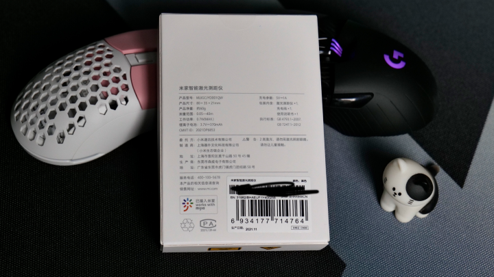 外包装还是小米的一贯极简风格白色为主的设计,中间是测距仪的图片,右上角是米家的logo。左下角是这款产品的型号以及一些特性,背面就是产品的一些详细参数了,生产日期也是这个月刚出厂的,可以说是刚下生产线就直接到手了