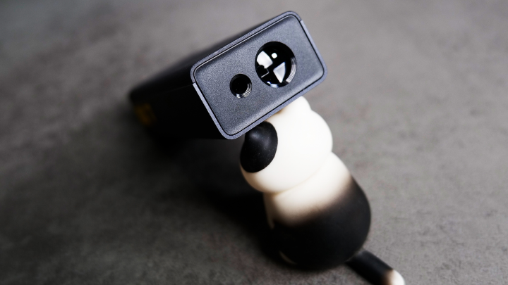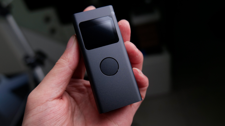 整个测距仪的体积控制的非常的不错,拿在手里虽然小但是挺有分量的。前面板是一个金属材质,表面做了磨砂的处理,手摸上去的触感还是很不错并且不容易留下指纹