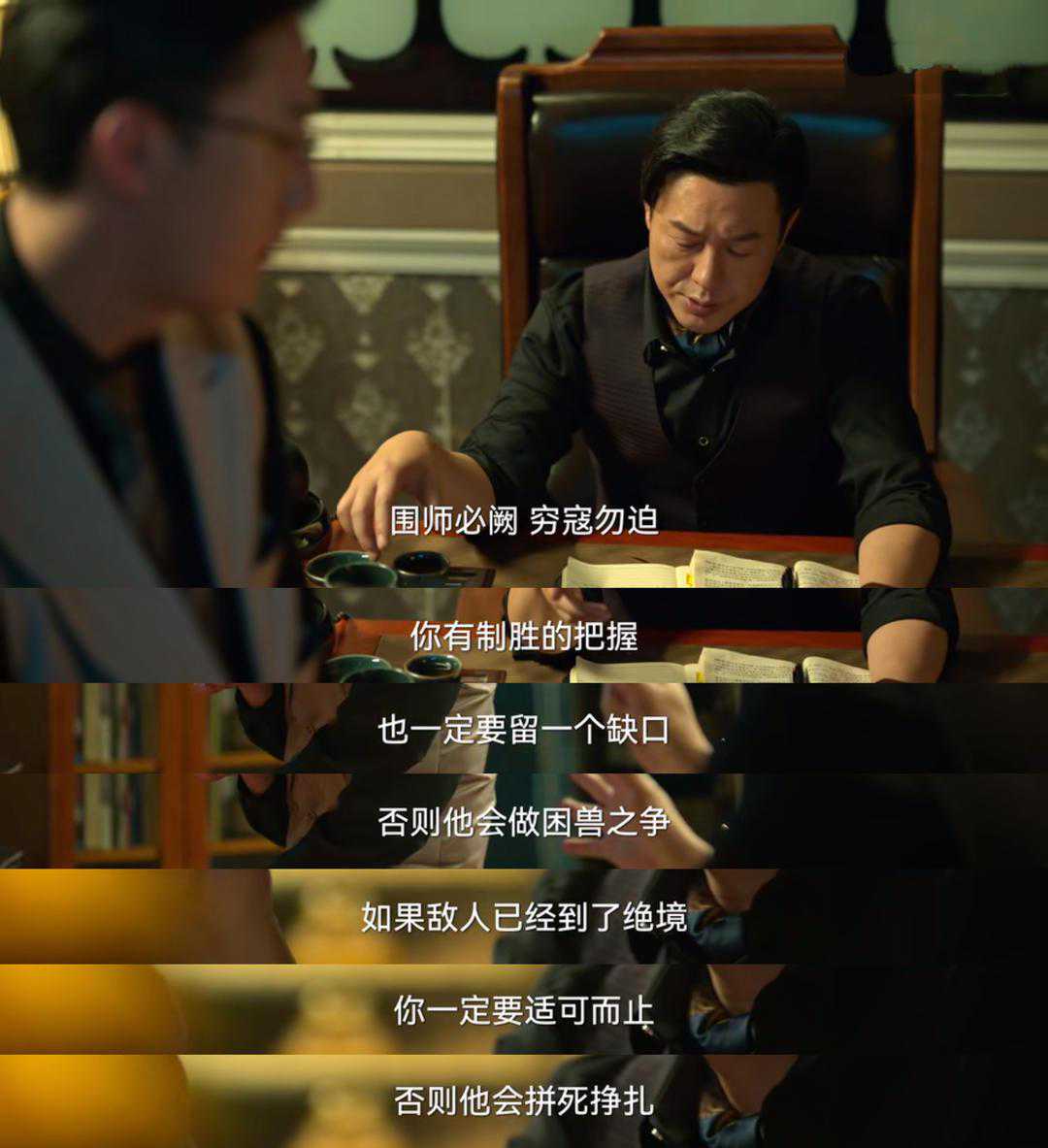 最初在《狂飙》的第4集,安欣去看望还在卖鱼的高启强,安欣对高启强说,要提高自己的文化素养,做生意就像打仗一样,要读读《孙子兵法》。后面,开了公司的高启强还向弟弟展示了那本已经读得破旧的《孙子兵法》,引用《孙子兵法》中的“围师必阙,穷寇勿迫”,教育弟弟做事要留有余地。