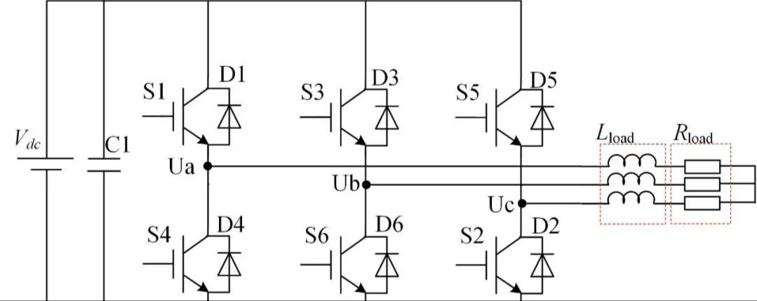 为了加深对自然换流和强迫换流的理解,我们以三相电压型逆变器(阻感负载)为例,对IGBT的换流过程进行简要说明。