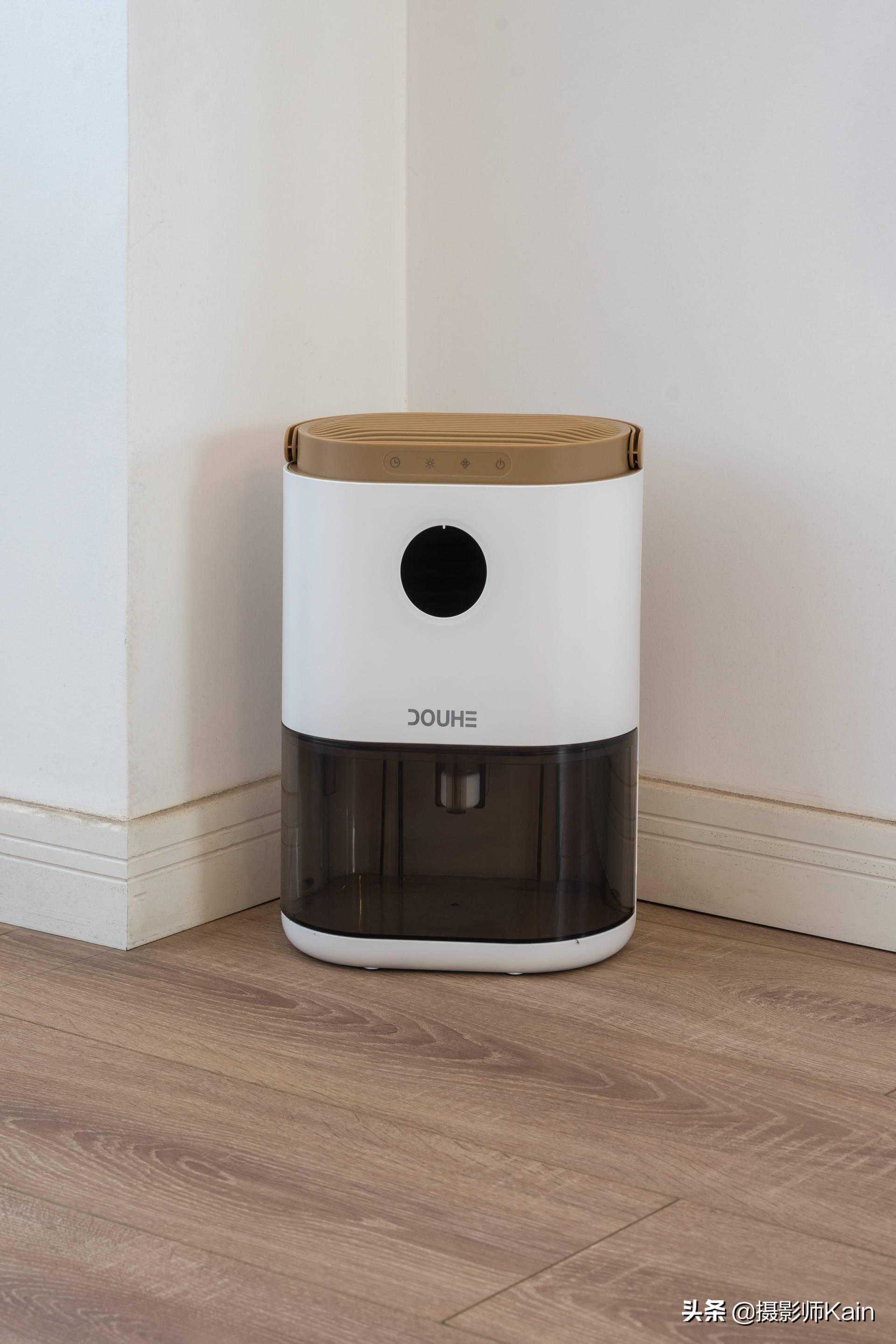 除湿机长这样,各部分的功能非常简单明了,体积也很小巧,可以在家里的任一角落发挥作用。