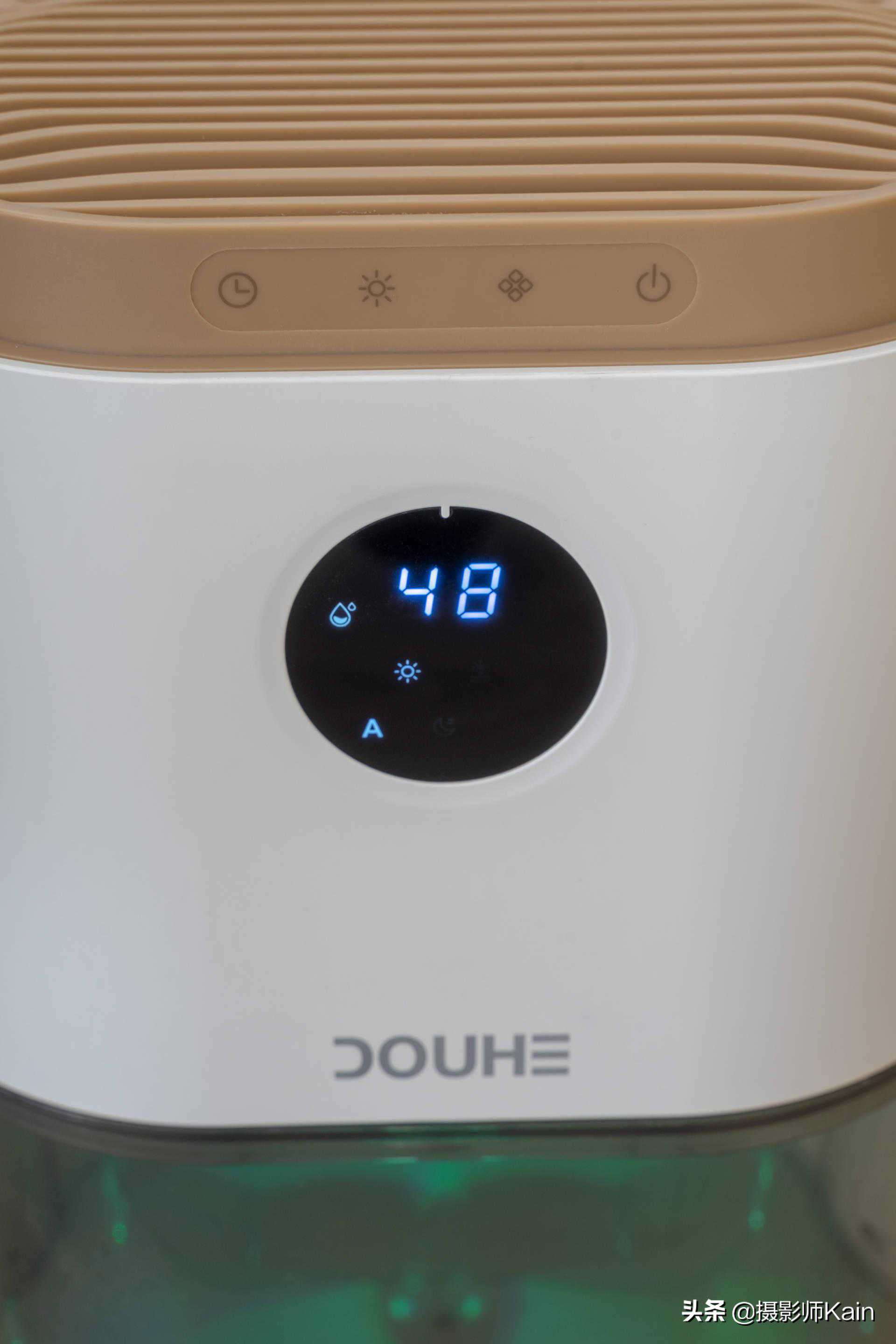 中部的屏幕会显示除湿机的工作状态,以及外界环境目前的相对湿度,内容简单明了,一眼就能看懂。