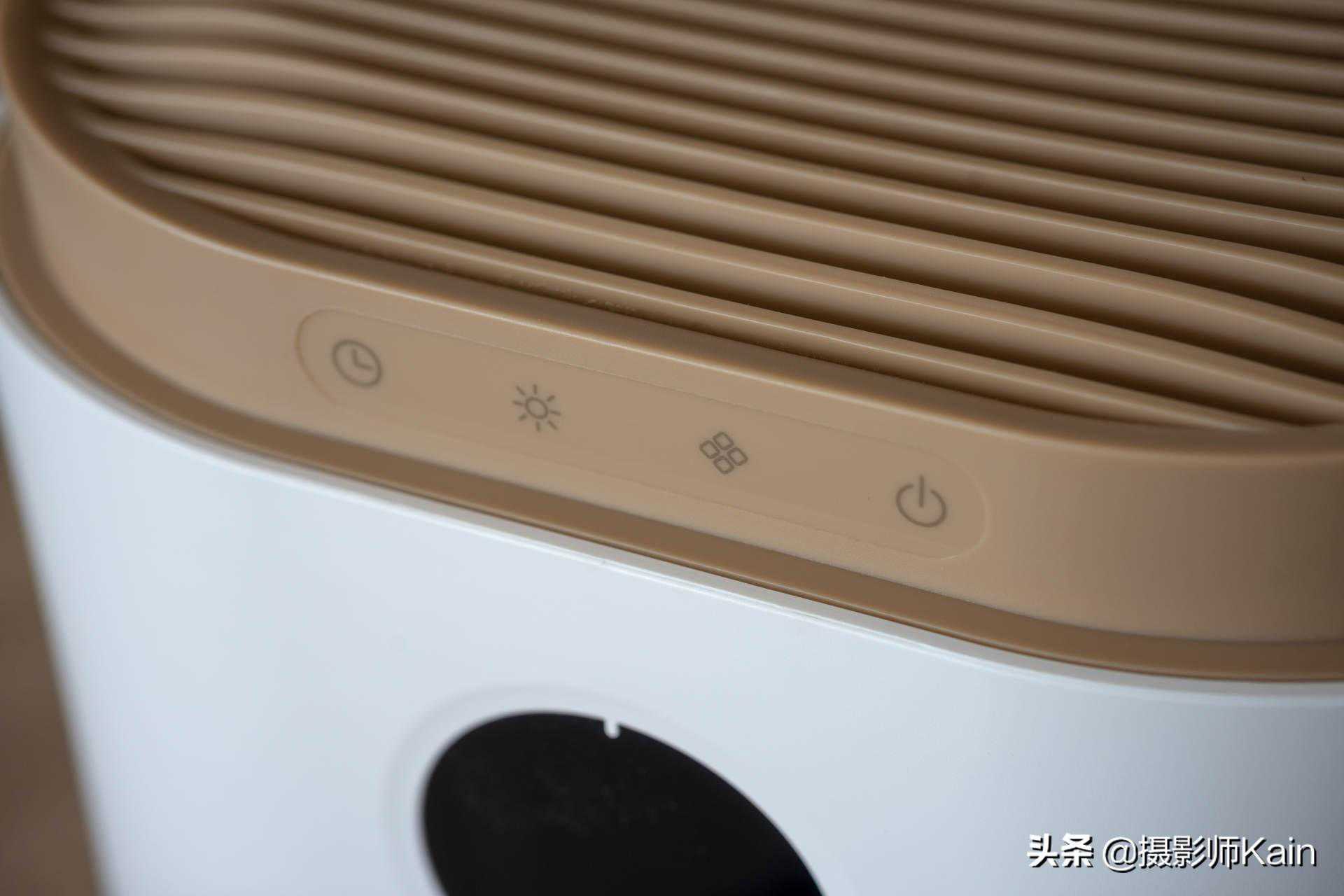 上方有四个隐藏式按钮,手指触碰即可触发,从左到右分别是定时、灯光、功能和电源。