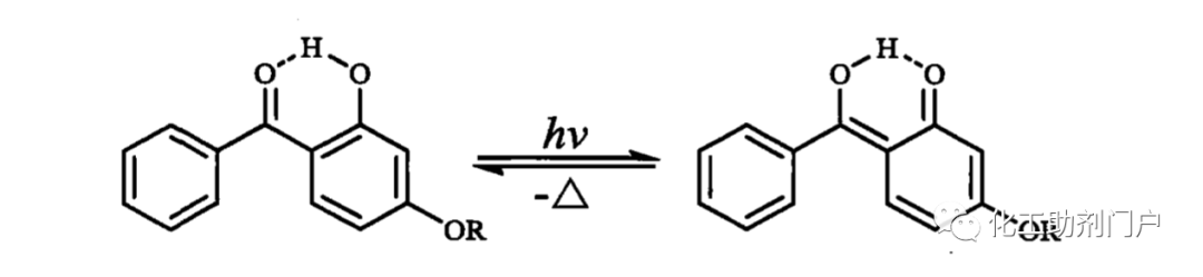 这类化合物具有特殊的分子结构,结构中多数存在分子内氢键,在一般状态下氢键是闭合的,当有波长为290-400nm的紫外光照射时,它会吸收紫外光能量,达到激发态,分子内质子转移使分子内氢键打开,分子变成一种不稳定的酮式结构并回到基态,同时把光能转化为热能释放出去,相当于自身吸收紫外光的能量,避免大分子体系受到紫外光能量的干扰,从而防止了高分子材料光氧化或光降解。