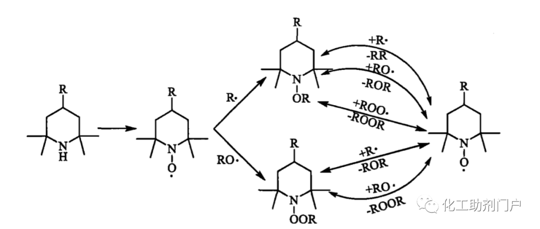 自由基捕获剂是一类捕获高分子材料中高活性自由基的光稳定剂,可以抑制或减缓光氧化反应的发生。受阻胺类光稳定剂(HALS)是自由基捕获剂中最具代表性,目前应用最为广泛的光稳定剂,它具有几乎无色毒性小、不会使树脂着色、价格低廉和出色的光稳定性能等优点。