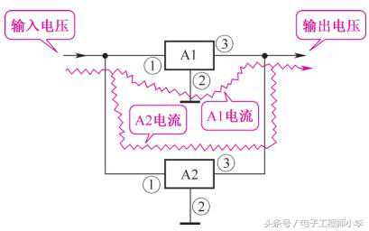 集成电路A1为负载平均分担工作电流,A1和A2为负载电路提供相同的工作电压。