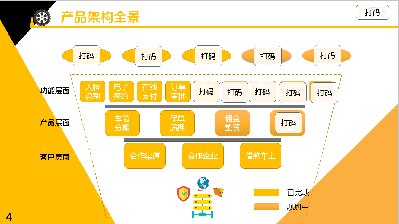 实际案例中,目前企业的战略是保险行业助贷产品的研发。通过对产品架构的讲解,产品评审会上的人员都明确了此次产品开发对于企业战略的意义。(部分信息打码处理)