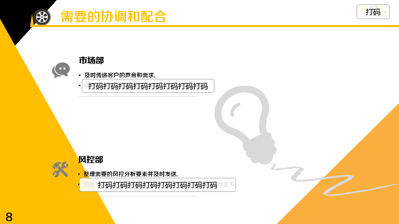 实际案例中,对希望市场部和风控部协助的地方进行了必要的说明。