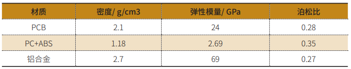 本仿真模型所涉及零件多为EPE泡棉及PCB板,EPE泡棉采用的密度为23kg/m3,应力应变压缩曲线如图9。板卡连接器采用PCABS材质、散热器采用铝合金材质、仿真模型所用到的材料性能,如表1。