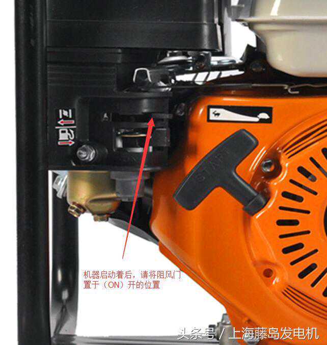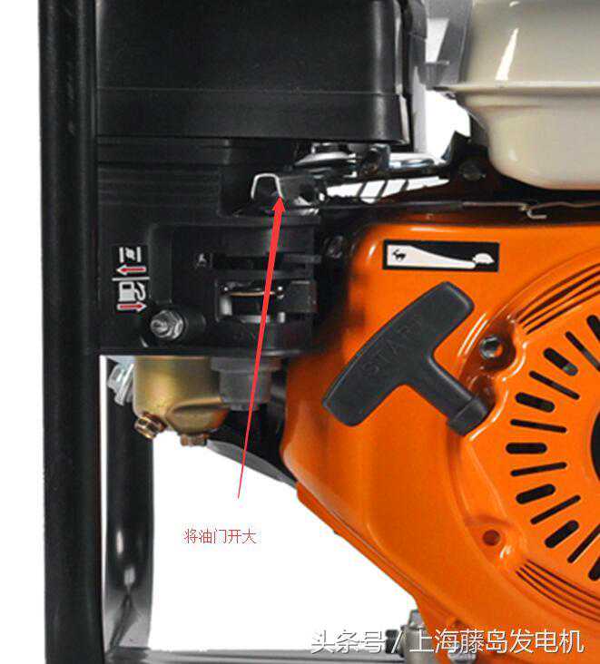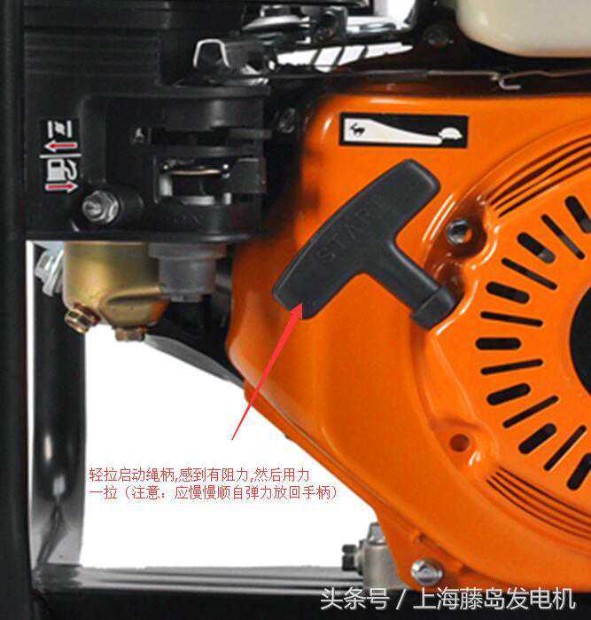 5.轻轻拉动起启动手柄至有阻力感,然后快速拉动,注意放回启动手柄时请勿打击发动机,应轻轻放回防损坏启动器。