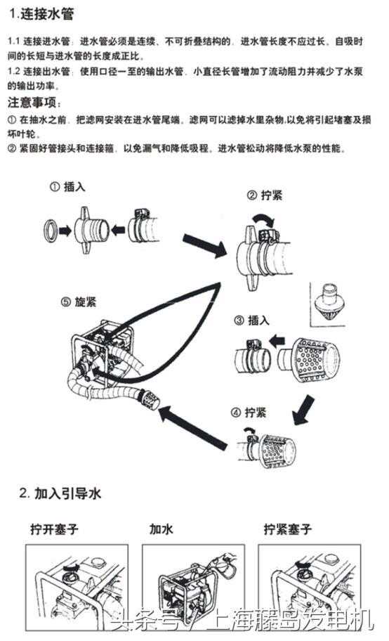 6.操作水泵前水泵抽水末端务必安装过滤器,防止异物进入堵塞或损坏水泵内部件。