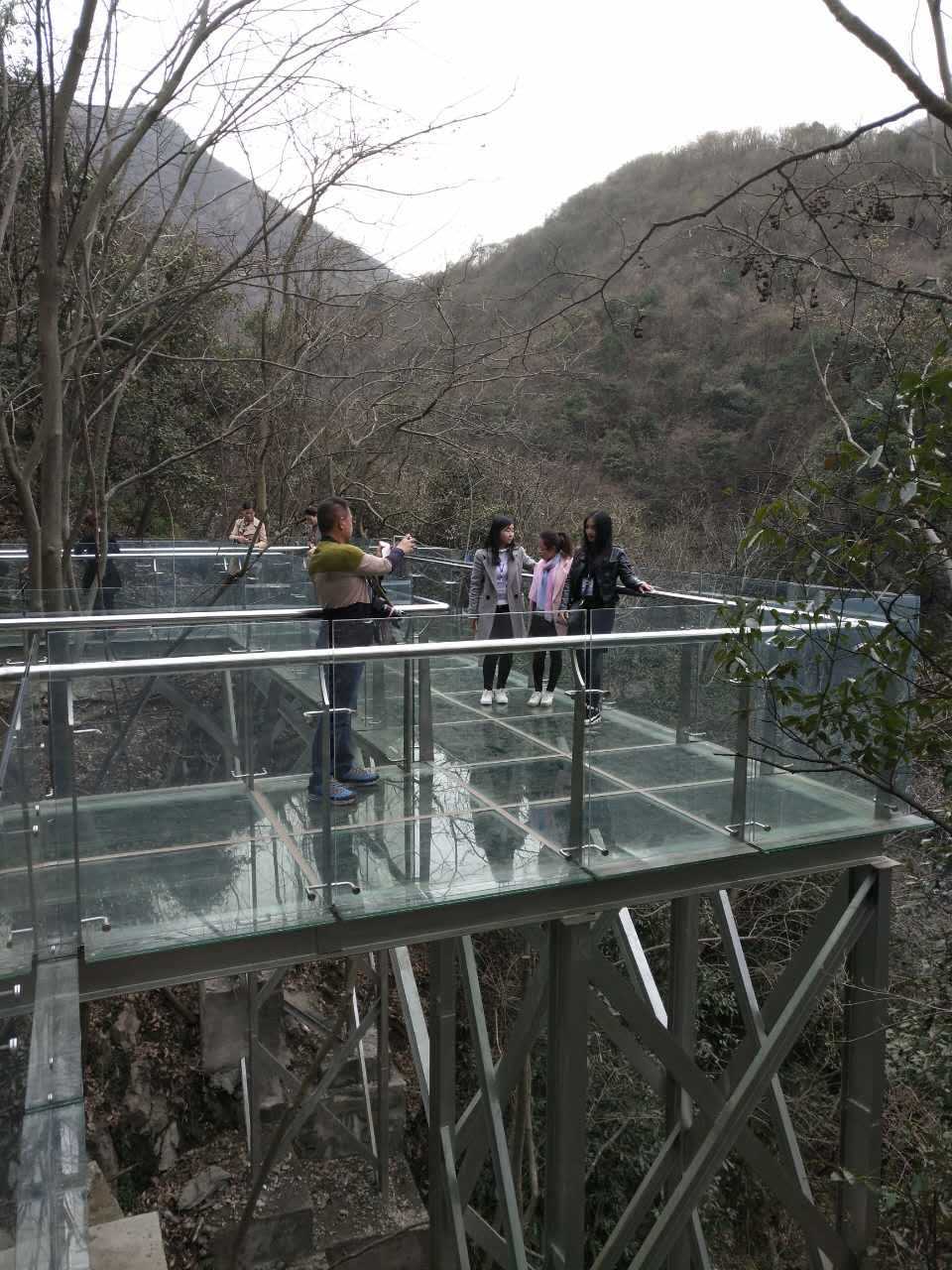 新建成的观光玻璃栈道全长35米,设立于悬崖峭壁之上,距河谷底部高约220多米。站在玻璃栈道上可体验“一览众山小”的壮观景色。