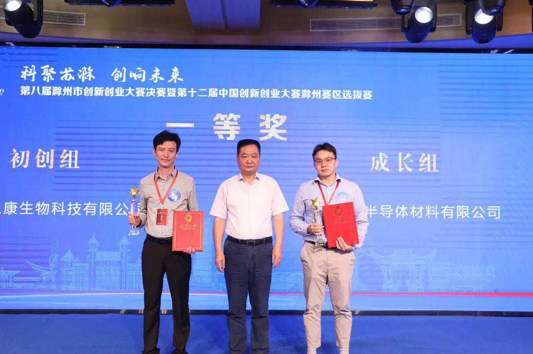 通过初审、复审、预赛和总决赛的激烈角逐,最终产生初创组和成长组各小组一等奖1名,二等奖2名,三等奖3名。安徽施恩康生物科技有限公司、南大光电半导体材料有限公司分别摘得初创企业组和成长企业组一等奖的桂冠;安徽中舟科创产业科技有限公司、安徽施恩康生物科技有限公司摘得“现场人气奖”的殊荣。金融活水助力创新创业,8家企业在活动现场与建设银行完成意向授信,总额度8000万元人民币。根据获奖情况,滁州市科技计划项目创新创业专项优先立项,全部推荐参加第十二届中国创新创业大赛安徽赛区比赛。